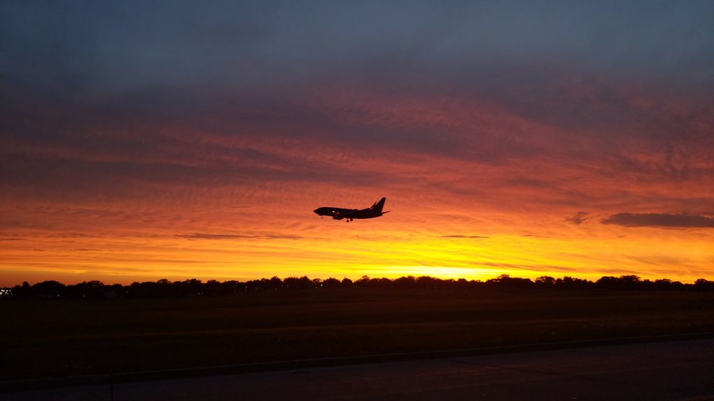 Sunset with plane